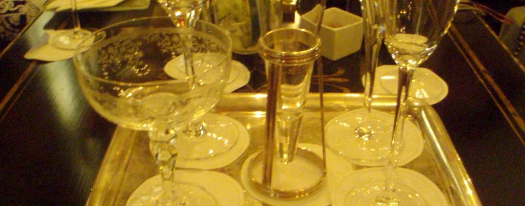The ambiance doesn’t stop there. The knowledgeable sommeliers can tell you anything and everything about how Champagne is made. They also can share fascinating details about about the various offerings from the small Champagne houses which are rarely seen in the U.S. And after you have chosen your glass or flight of Champagne, the sommelier then emerges from behind the bar with a dazzling tray of crystal glasses–tulips, coupes, flutes, and goblets of various sizes and shapes. You get to choose your bubbly AND the type of glass you will drink it in. Only in France!