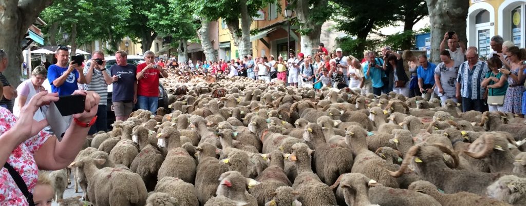 Travelers to Provence know that the region is noteworthy for many wonderful things – sun, sea, sunflowers, lavender, perched villages, Roman ruins, markets, olive oil, garlic, rosé wine, cuisine and climate. With the charming fête de la transhumance, we could also add sheep to the Provence pleasures list?! In any case, if you’re traveling there in late May or early June next year, be sure and check local schedules for the festive happening. Especially if you’re bringing the kids!