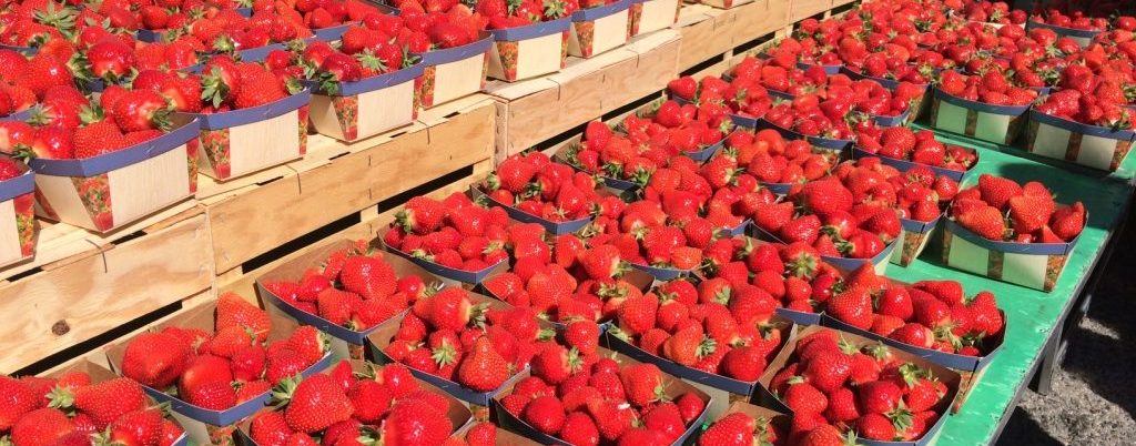 It’s strawberry season in France – and it’s about time too. After the gray and cold of the French winter, strawberries mean real spring and almost summer have arrived. Yesterday, the local village market here in Provence was overflowing with the juicy red fruit. This vendor had dozens of barquettes of strawberries for sale. I couldn’t help buying two or three.