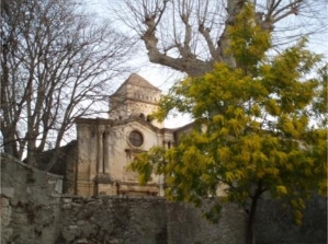 Last February I had my own route du mimosa as I drove from Nice westward towards Aix-en-Provence and beyond. It was a brilliant sunny day and yellow splashes of color covered the hillsides on either side of the autoroute (highway). Bouquets of mimosa dotted the open-air market in Aix when I arrived mid-morning. Later that afternoon, I visited the St. Paul de Mausole monastery near St. Rémy where Van Gogh spent a year before his untimely death. The blooming mimosas contrasted starkly with the solemn chapel and neighboring dormant trees.