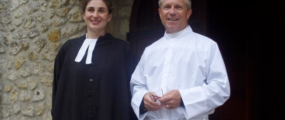 The pastor was an attractive, intelligent looking woman in her thirties. Basque. Jet black hair, setting off her starched white preaching-tabs overlaying her black cassock. The vesture of the l’église reformée. Her congregation was itself not sizeable. And decidedly older. Elizabeth and I went to church with them before our service to meet her and get a sense of the setting.