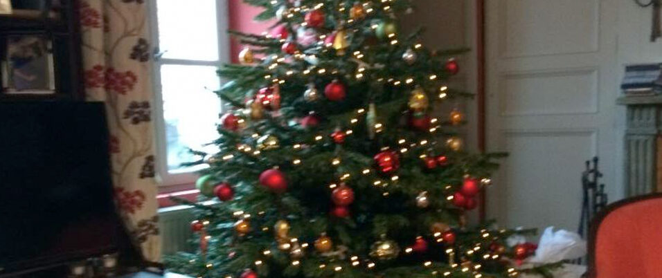 At least we have double wide gates and doors, so the importation process yields up only a modest bunch of cursing. We had opted for them to put a nice wooden base on the trunk, since that was a small additional price and we didn’t move a Christmas tree holder with us to France. We would discover reasonably quickly why these holders are important. Yes, these trees need water. The very ancient looking and traditional stands are nicely ancient and traditional, but that is because your average person putting up a tree in the 19th century and earlier didn’t have it in the house for two weeks. We will put up with the dropped needles this year, and next year plump for the stand associated with the 21st century Christmas Tree realities.