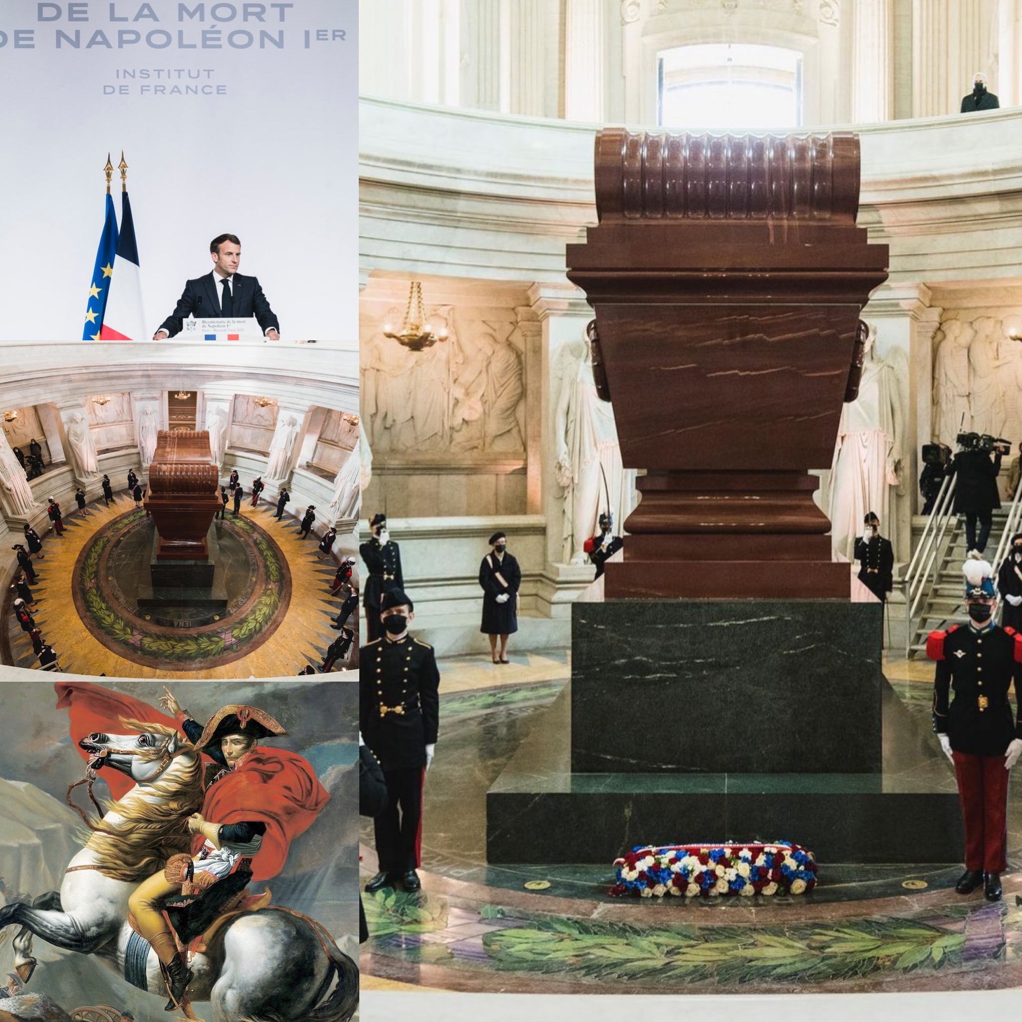 Like him or not, France would not be France without Napoleon Bonaparte. His influence and presence remain everywhere in France including at Les Invalides in Paris at his outsized tomb. As this past week marked the 200th anniversary of his death at St. Helena in 1821, several official commemorative events took place in Paris as seen in the photos below. Many French newspapers and media outlets have been revisiting Napoleon’s life and legacy – Napoleon’s actions elicited strong opinions in his own time and still do today. The polemic tends to frame him as Hero or Villain, depending on one’s point of view. For a good overview of Napoleon and his impact, we invite you to join us on Saturday, May 15, 2021, for our May Mini-Course on his life and work. There are a few spots still available! Click here of more details and to register. And check your knowledge of Napoleon with a fun short quiz courtesy of the French newspaper Le Monde – note it’s in French!